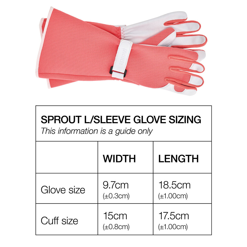 Sprout gardening gloves have been much loved by gardeners all over Australia. New to the range is the long sleeve version to provide extra protection from sun and scratches from thorns and spikes. Same soft leather hand pieces and adjustable wrist strap, available in 2 sizes. Sprout , which is a ladies medium size, and Skin – a more generous fit for larger hands.