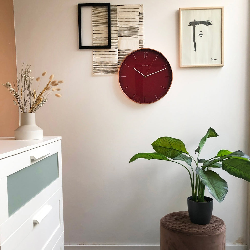 1 x NeXtime Very Essential Wall Clock 40cm Wine and Copper