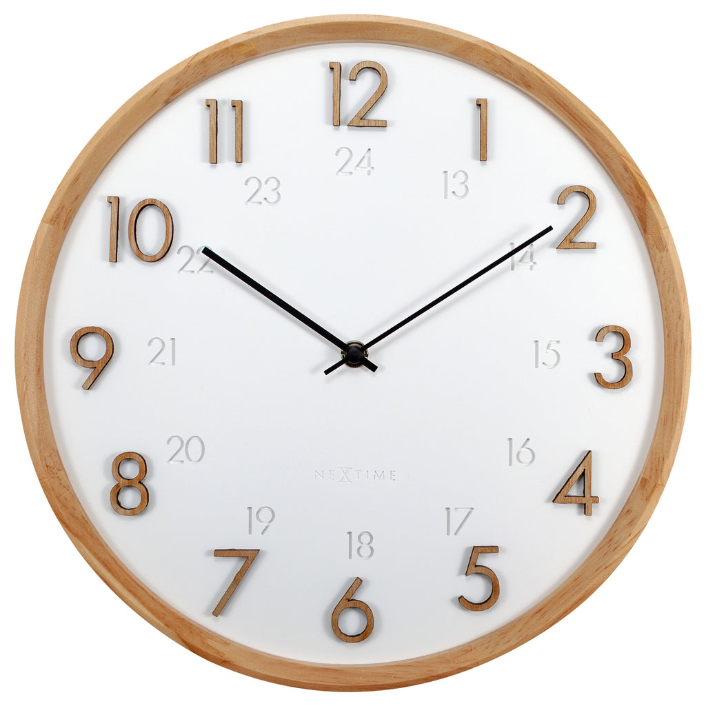 Jikan Japanese Design Wall clock is Designed by Ampersand Factory for NeXtime. The clock is made from a combination of pine wood and concrete giving it a natural look. The clock face features raised wooden 12-hour numbers and indented 24-hour numbers. The clock is sophisticated, stylish and simple. Silent sweep movement, so no ticking sound! This clock has an open face.