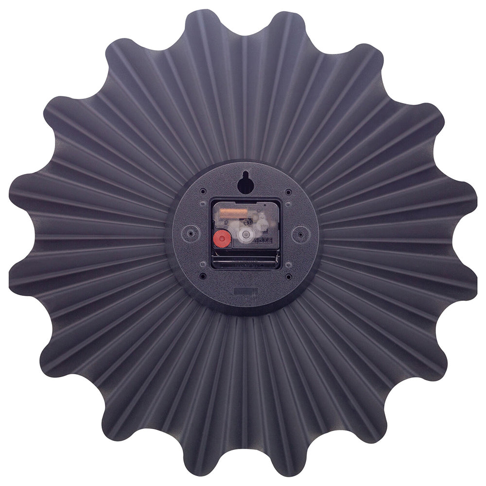 Add a luxe accent to a room with this gold coloured, 40cm Sunny wall clock. The matt-coated metal dial has a fluted radial pattern giving the clock a starburst look. This clock has an exposed face.