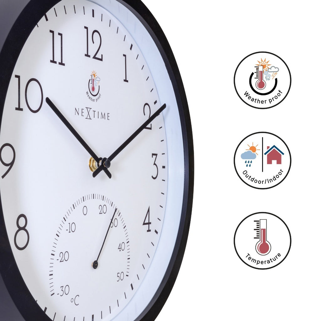 NeXtime Marigold Weatherproof Outdoor 30.5cm Wall Clock - Black/White