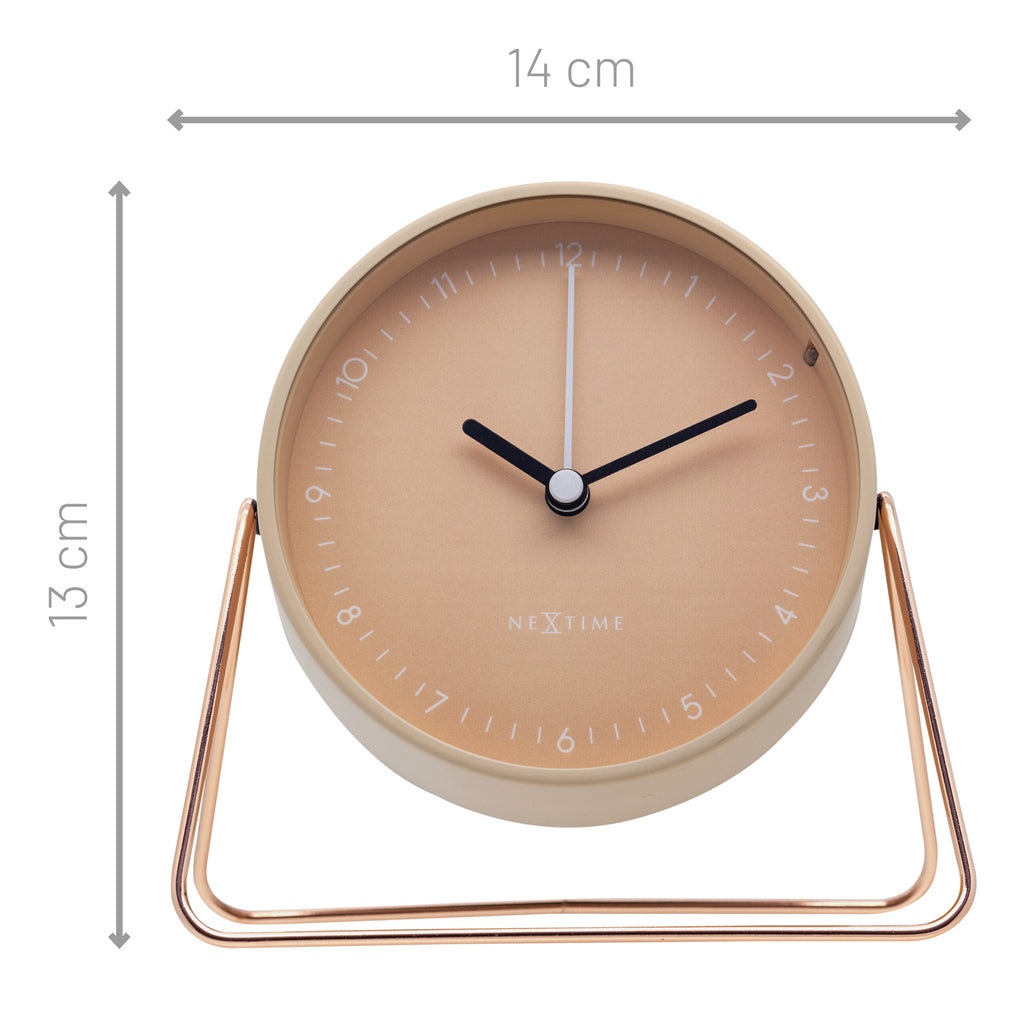The subtle numbers and linear markings are framed by a matt aluminium case. The matching colour of the face and case add to the modern minimal look of the clock.