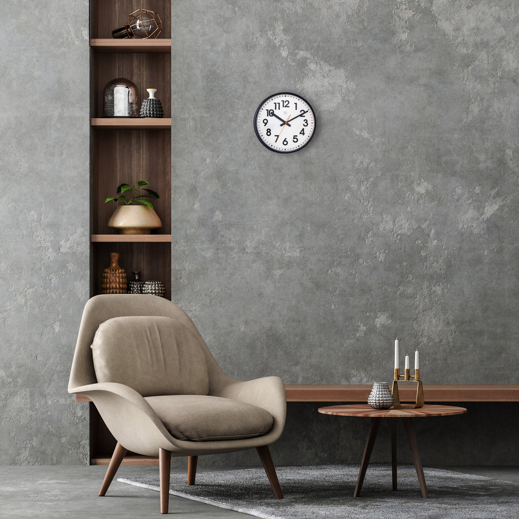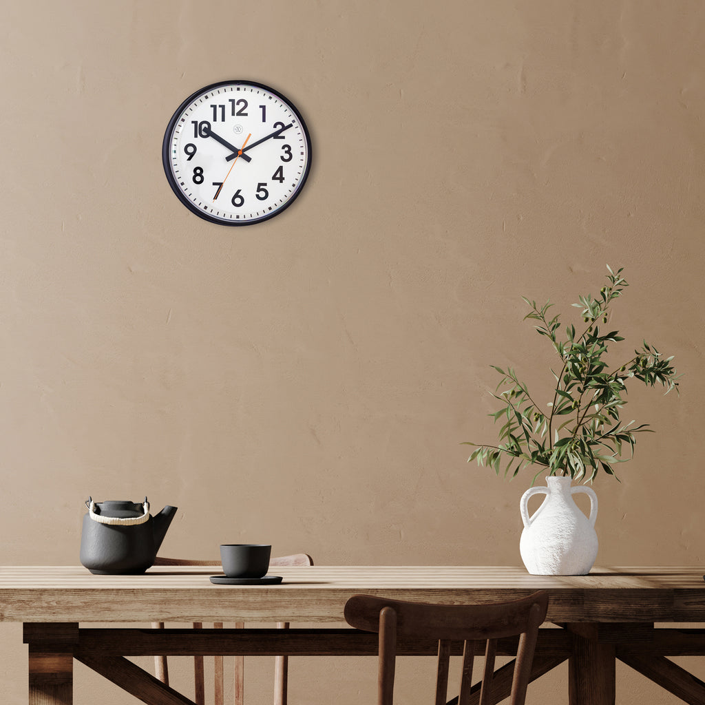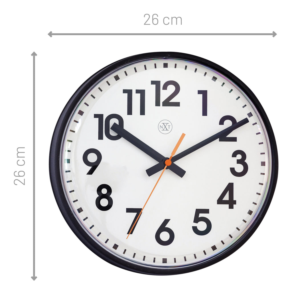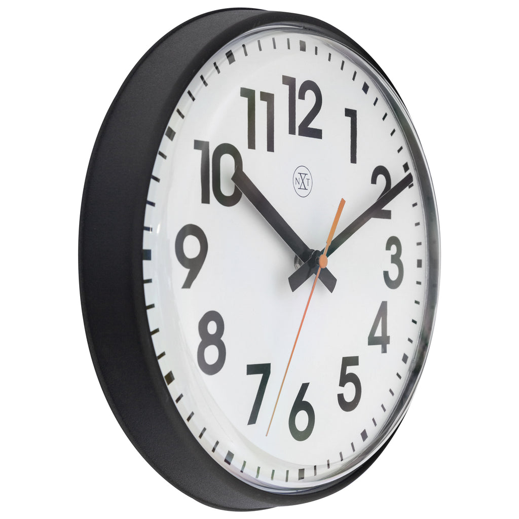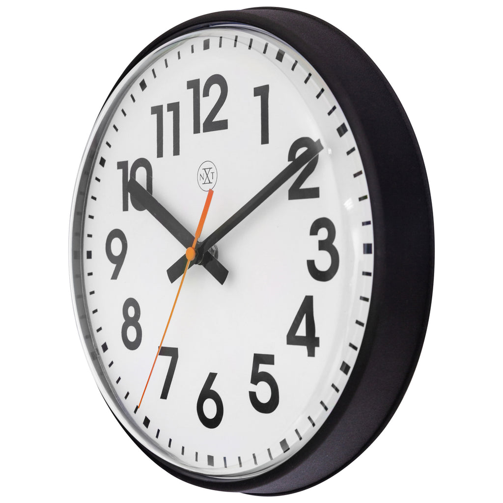 The nXt Peter silent wall clock combines minimalist sophistication with functionality. The simple bold design makes this clock ideal to hang in an office, classroom or kitchen. The slightly dome shaped plastic cover protects the dial from damage and dust.