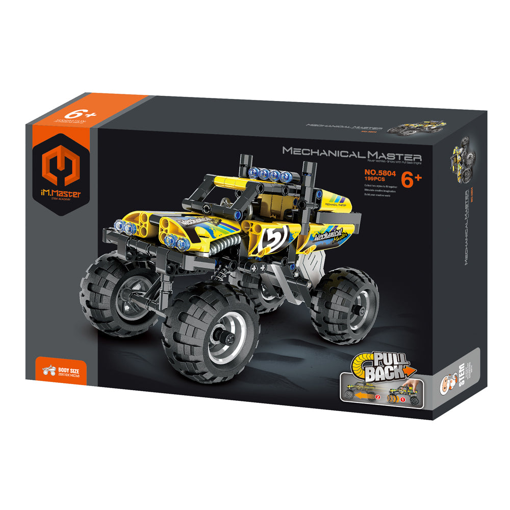 Pull Back Truck Yellow 199 Pieces (Can Combine With IM5803) Get ready for the ultimate thrill! Experience the exhilarating iM.Master Pull Back Truck in Yellow! With its striking simulation wheel hub and cool off-road design, feel the excitement of matching and mixing as you explore the fun of combining this the iM.Master Pull Back Truck in Blue (IM5803) to unlock hidden surprises and create an even more fantastic adventure!