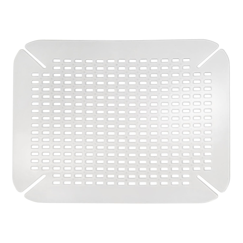 The iDesign Contour Sink Mat is the perfect addition to your kitchen. This sink grid protects your sink from scratches and nicks from your pots and dishes. Made of clear durable plastic, the sink grid will provide years of quality use. It prevents dishes from sliding around the sink for your convenience. The open design allows water to easily drain. It's also great to use in bathroom or laundry rooms for washing clothes! The iDesign Contour Sink Grid , an ideal size for your kitchen sink.