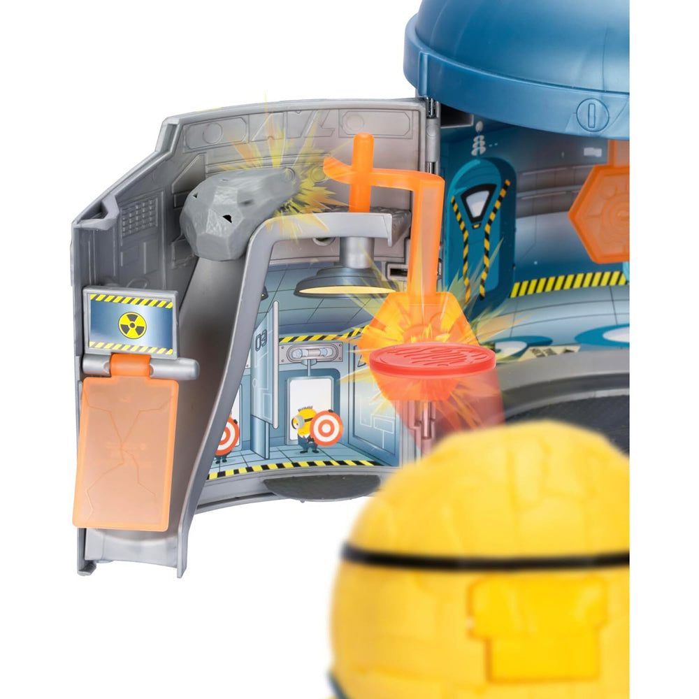 Mega Minions Transformation Chamber opens out to transform into an AVL Training Center with an array of fun action features