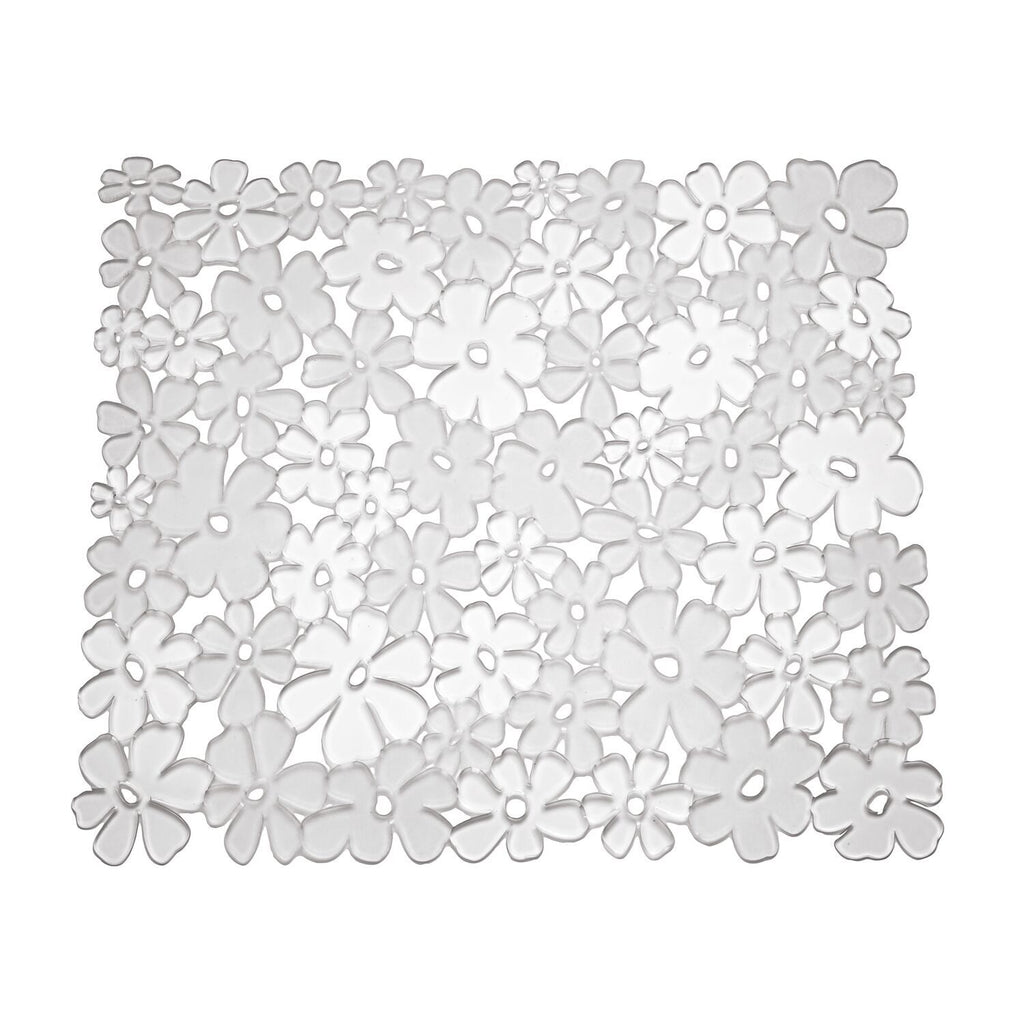 Add grip and cushioning to your sink with this PVC sink mat. Regular-sized mat ,but can be reduced for smaller sinks by cutting away flowers. Pair with other members of the Blumz line of products by InterDesign.
