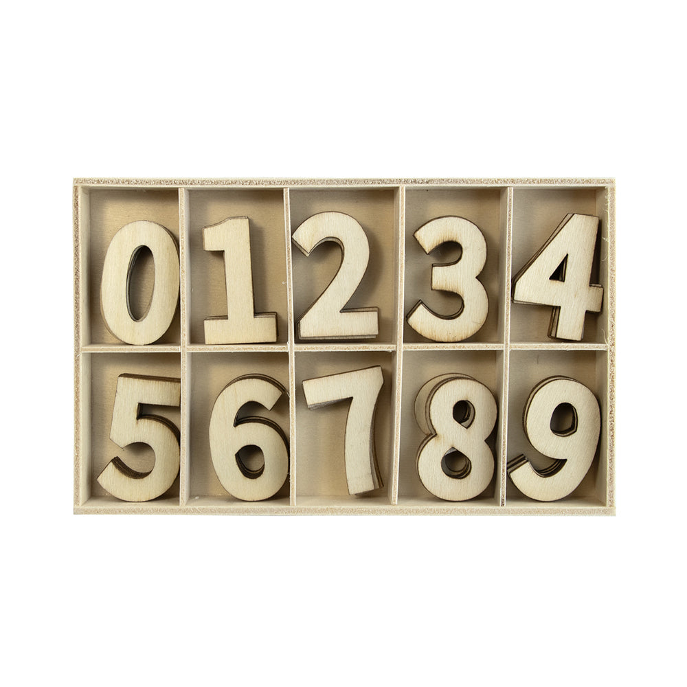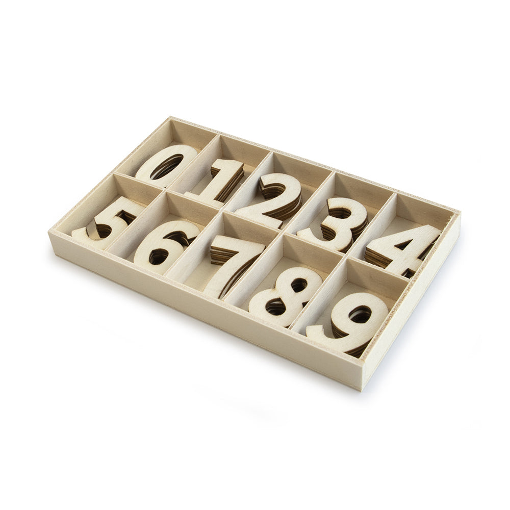50pc Boyle 14.5cm Plywood Number Set in Tray - Natural
