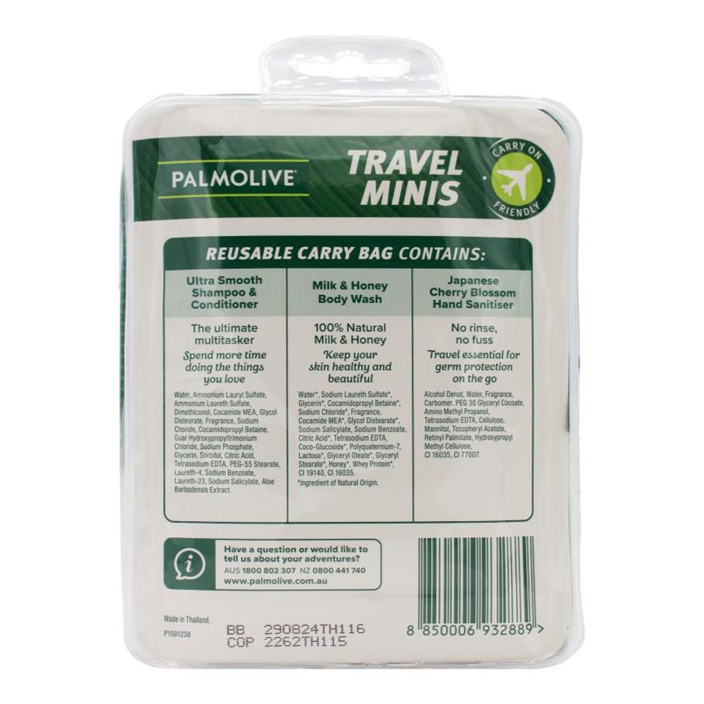 The Palmolive Travel Minis is carry-on friendly and contains 3 products in a reusable carry bag: