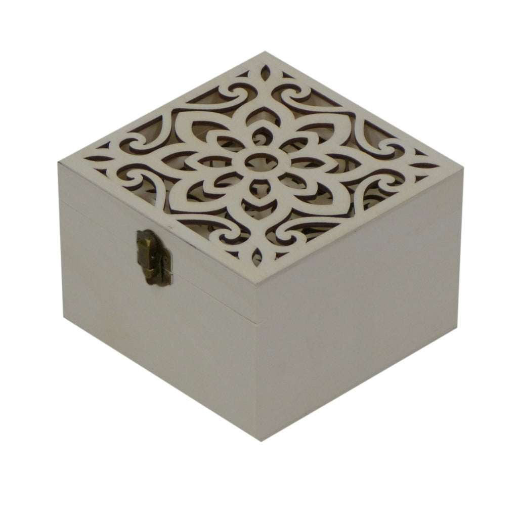 - The boxes feature a laser cut flower pattern.