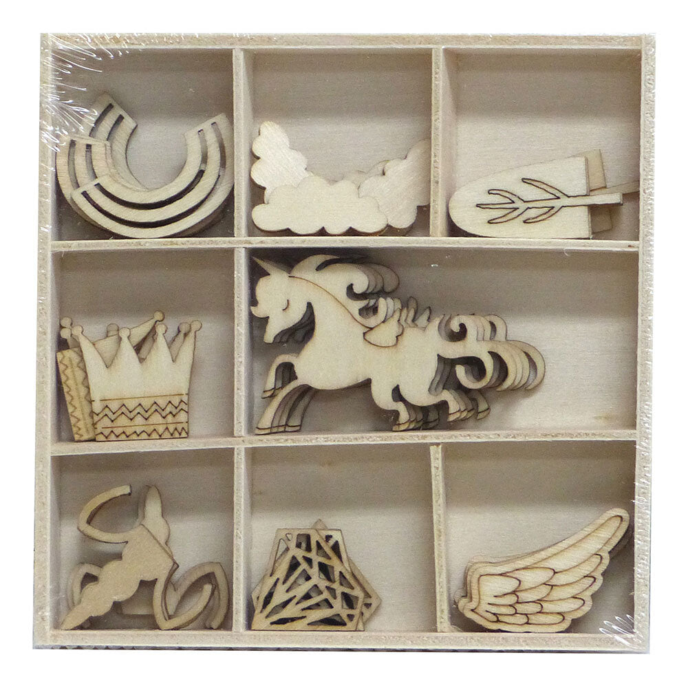 These mini wood pieces are ready to paint and decorate and can be stuck on to a variety of craft projects. They can also be used as stencils or stamps.