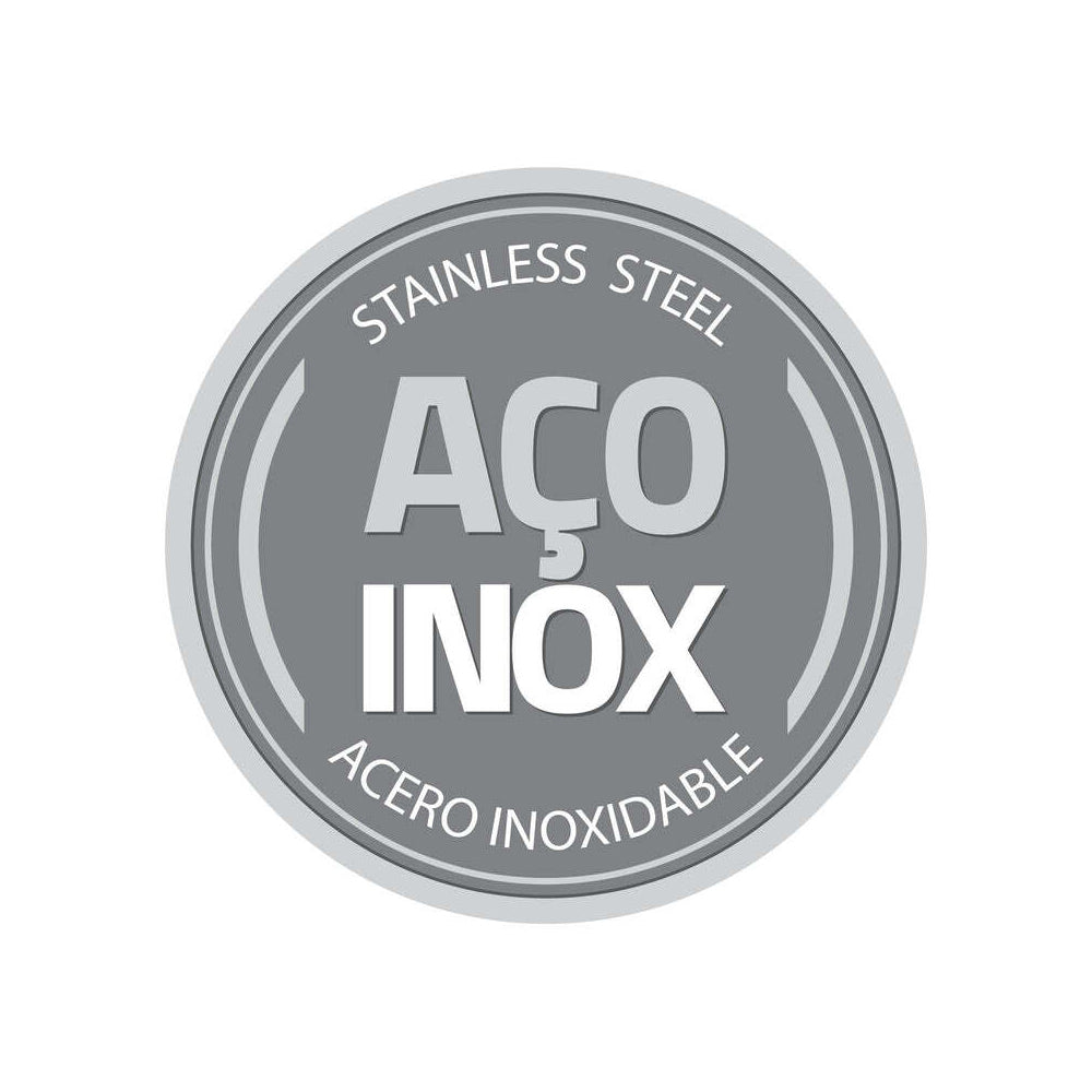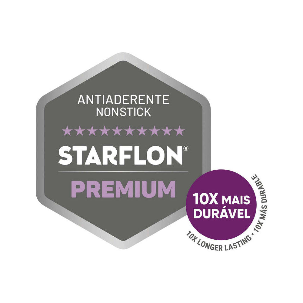 Tramontina's stainless steel shallow frying pan with tri-ply base, interior Starflon T3 non-stick Starflon Premiumcoating and silicone handle, 24 cm and 2.1 L, is part of the Solar Silicone line.