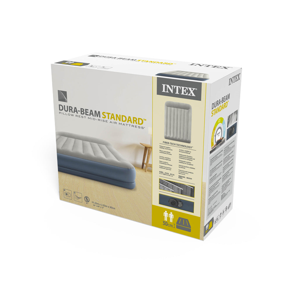 Intex Queen Pillow Rest Mid-Rise Airbed W/Fiber-Tech Bip 152x203x30cm