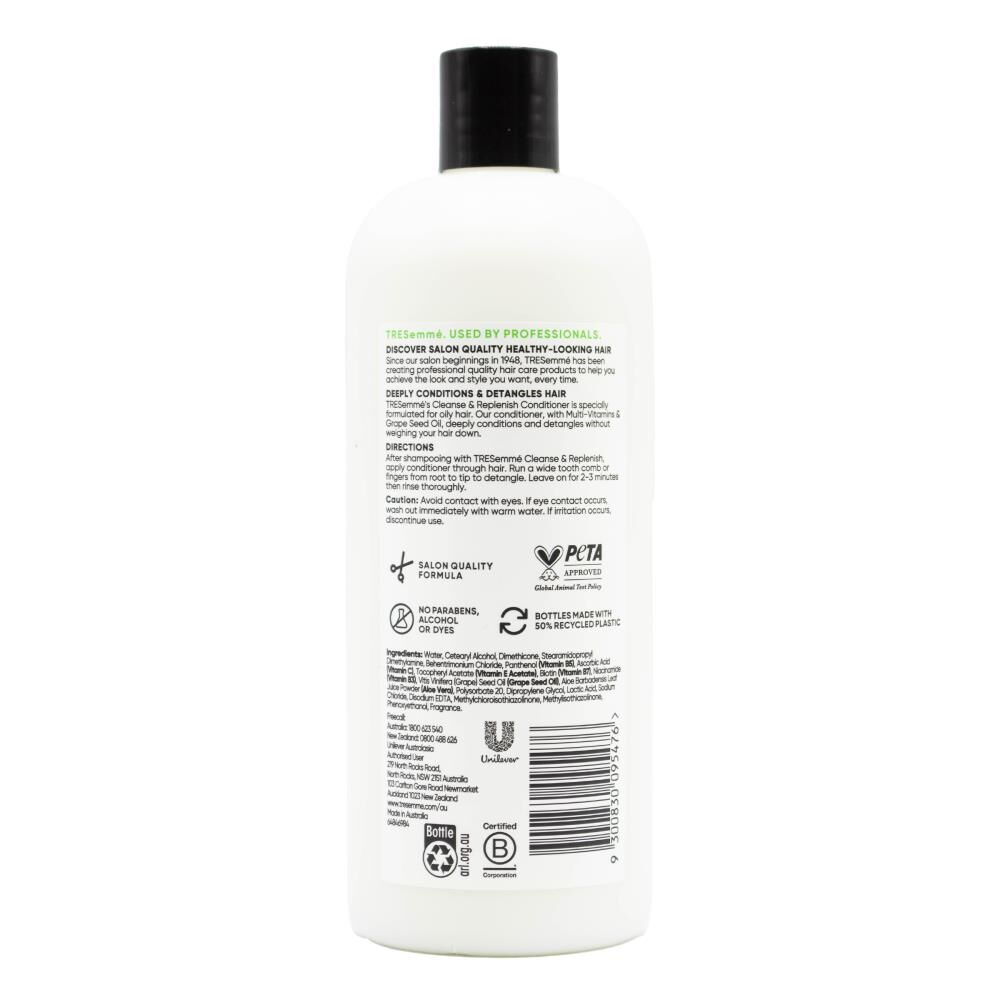 TRESemme's Cleanse & Replenish Conditioner is specially formulated for oily hair, enriched with multi-vitamins and grape seed oil to detangle and condition hair without weighing it down. Free from parabens, alcohol and dyes, this lightweight conditioner replenishes and nourishes your hair, leaving it vitally shiny and manageable for that just-left-the-salon feeling.