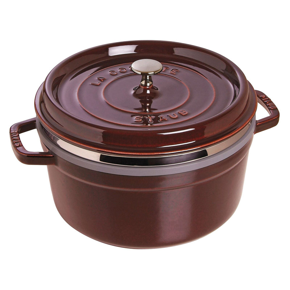 Staub 26cm/5.2L Enamel/Cast Iron Round Cocotte Pot w/ Steamer - Grenadine