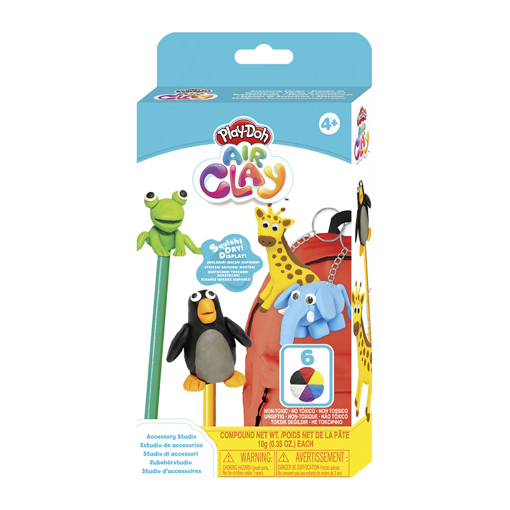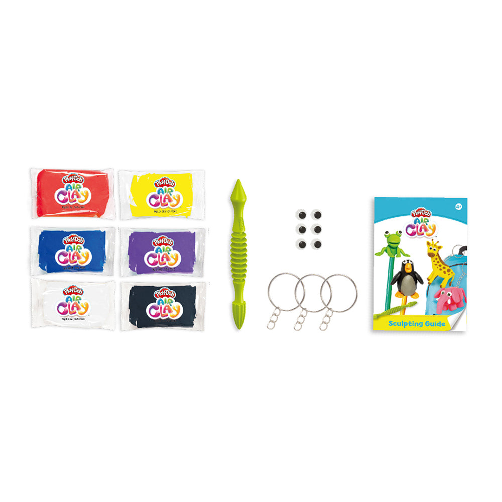 Full Description: With the Play-Doh Air Clay Key Chains Accessories set, children can be creative and stylish all at the same time. As part of the Air Clay range, children can bring these awesome creations to life and use them forever, they might even give you one of their creations as a gift!What makes this Play-Doh Air Clay Key Chains Accessories set so much fun is that it comes with six different colours of the awesome and fun Play-Doh Air Clay! This is very easy for children to handle; shape and it is non-toxic so it is 100 percent safe for little creative types. With this, they can make all kinds of fun things. A few creative examples that Play-Doh offers with this set are a frog, a giraffe, a penguin, an elephant, and a tiger. That right there would be cool and even more fun once you take into the crazy eyes that are included to really bring each animal to life!However, the Play-Doh Air Clay Key Chains Accessories set also comes with a set of key chain clips that can be put into three of their creations, and then these can be used to go on their backpack or their dad's car keys! They can even make these animals into fun pencil toppers so that when they are doing their school work it is even more fun! This set truly is a fun way for children to get the chance to show off and flex their creative muscles!Suitable for ages 3 and up.