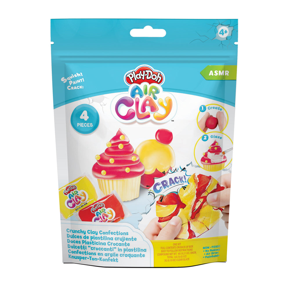 Children all over the world are loving the Air Clay range from Play-Doh! With this special Play-Doh, children can have the same kind of creative fun that they have been having for years, but there is a twist! Play-Doh Air clay is designed so that it harders, giving children a very cool item to display with pride in their room or even play with! This Play-Doh Air Clay Crunchy Clay Confections set comes with two packets of Play-Doh Air Clay, one red and one yellow. It also comes with some special textured pieces to make the cupcakes have a crunch to them when they are being made!