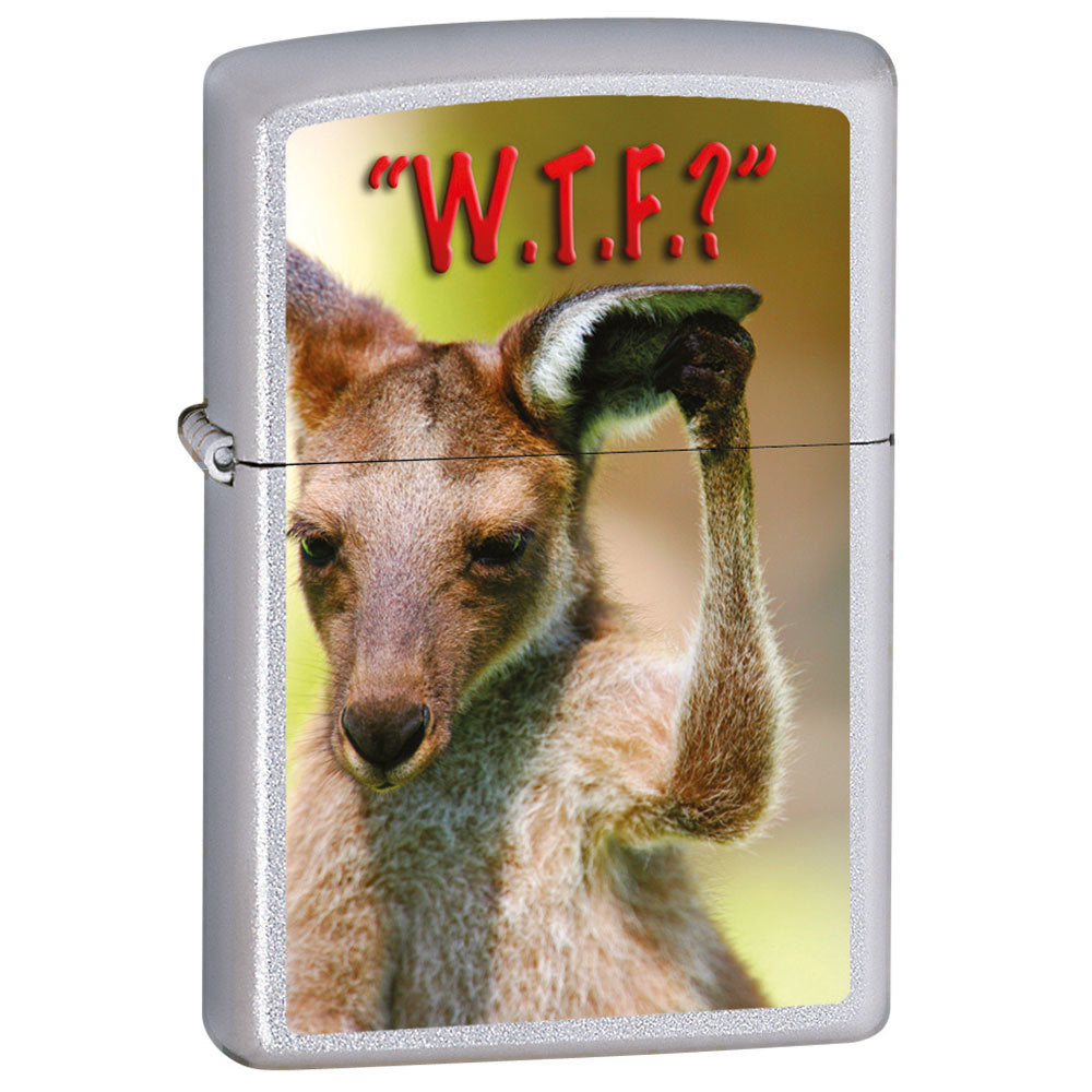 This Kangaroo Question Zippo Lighter features a Satin Chrome Finish, and is a genuine Zippo product and comes packaged in an environmentally friendly Zippo Gift Box directly from the Zippo Manufacturing Company. Every Zippo product we sell is brand new, sealed in Zippo’s original packaging. Buy this genuine Zippo product today for yourself, or as a gift for family or a special friend!