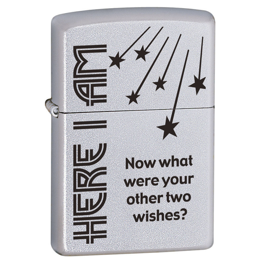 This Here I Am Zippo Lighter features a Satin Chrome Finish, and is a genuine Zippo product and comes packaged in an environmentally friendly Zippo Gift Box directly from the Zippo Manufacturing Company. Every Zippo product we sell is brand new, sealed in Zippo’s original packaging. Buy this genuine Zippo product today for yourself, or as a gift for family or a special friend!