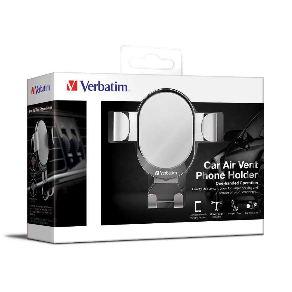 Verbatim Car Air Vent Gravity Holder w/ Grip For Mobile Phone - Silver