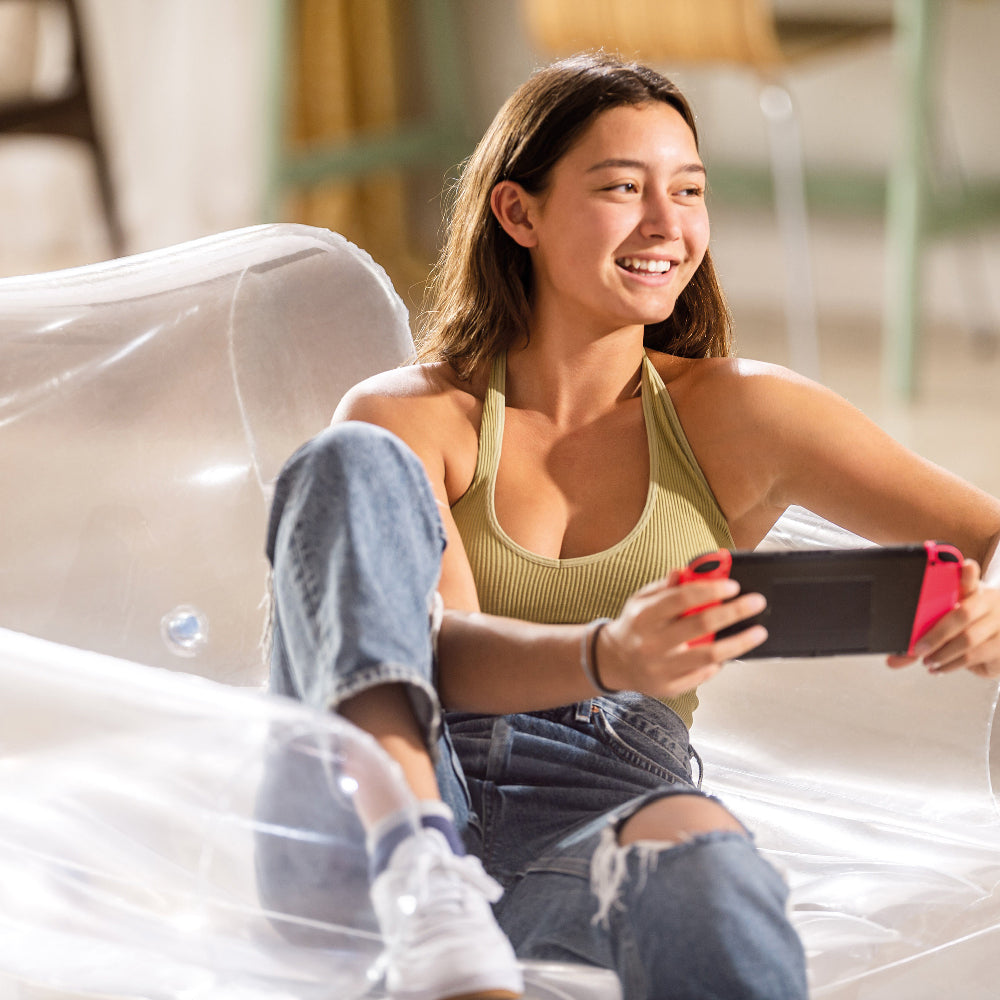 Lightweight and easy to inflate, this armchair is the perfect addition to any room. The trendy and stylish transparent design will add to the ambiance of any room Modern and stylish Folds compactly for storage or travel