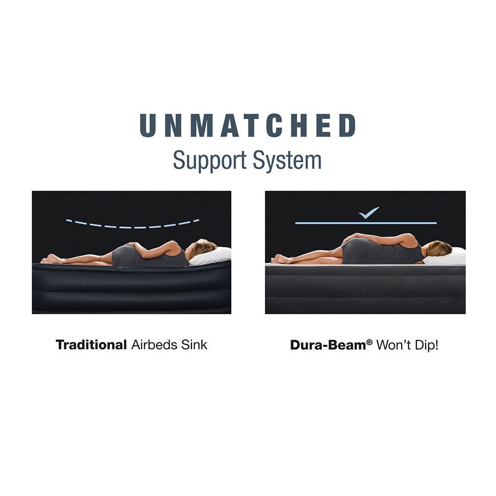 Your guests will appreciate the luxurious comfort this AIR BED provides. Fiber-Tech interior construction offers superior stability and exceptional durability. Soft, dual-layer comfort top provides a smooth sleeping surface, ensuring a restful night’s sleep.