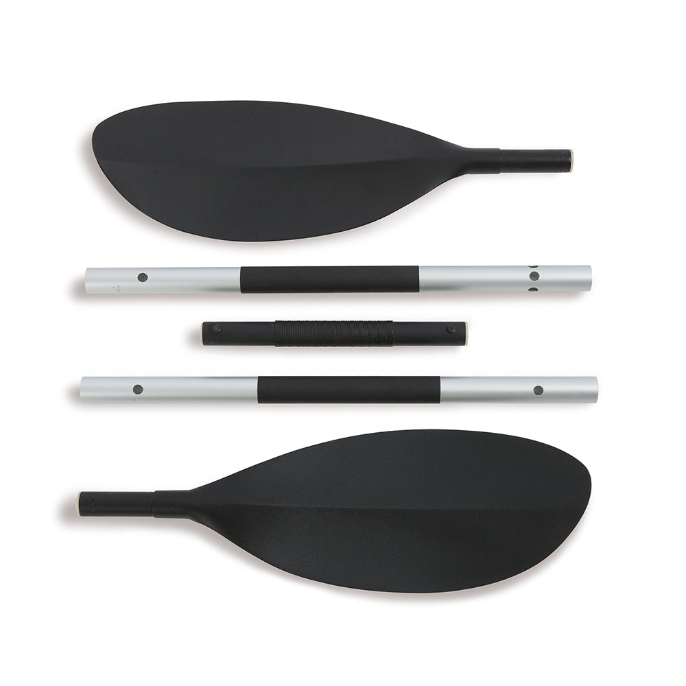Made with rugged vinyl construction and built for performance, this sturdy kayak has an inflatable I-beam floor, a low-profile deck and high-buoyancy side chambers for stability, comfort and function. A removable skeg provides exceptional directional movement, while an adjustable, inflatable seat with a backrest is included for comfortable seating. A grab line at each end is provided for your convenience, as well as a cargo net for extra storage, a NMMA certified U.S. Coast Guard I.D., and a repair patch kit. The Challenger K2 Kayak provides added accessories including: two 86 inch aluminum paddle and an Intex high-output pump for easy inflation and deflation.