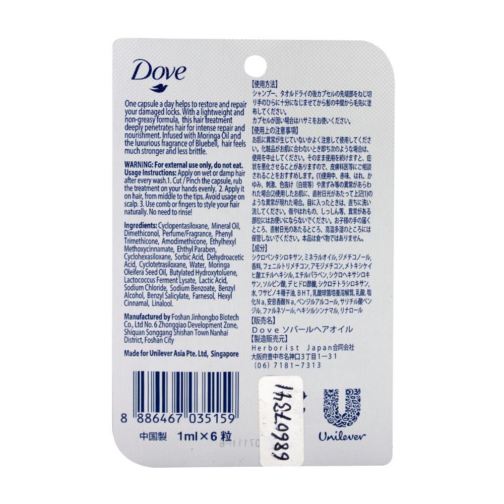 Dove Pk6 X 1ml Botanical Selection Nourishing Hair Oil Infused with Moringa Oil & Bluebell Fragrance