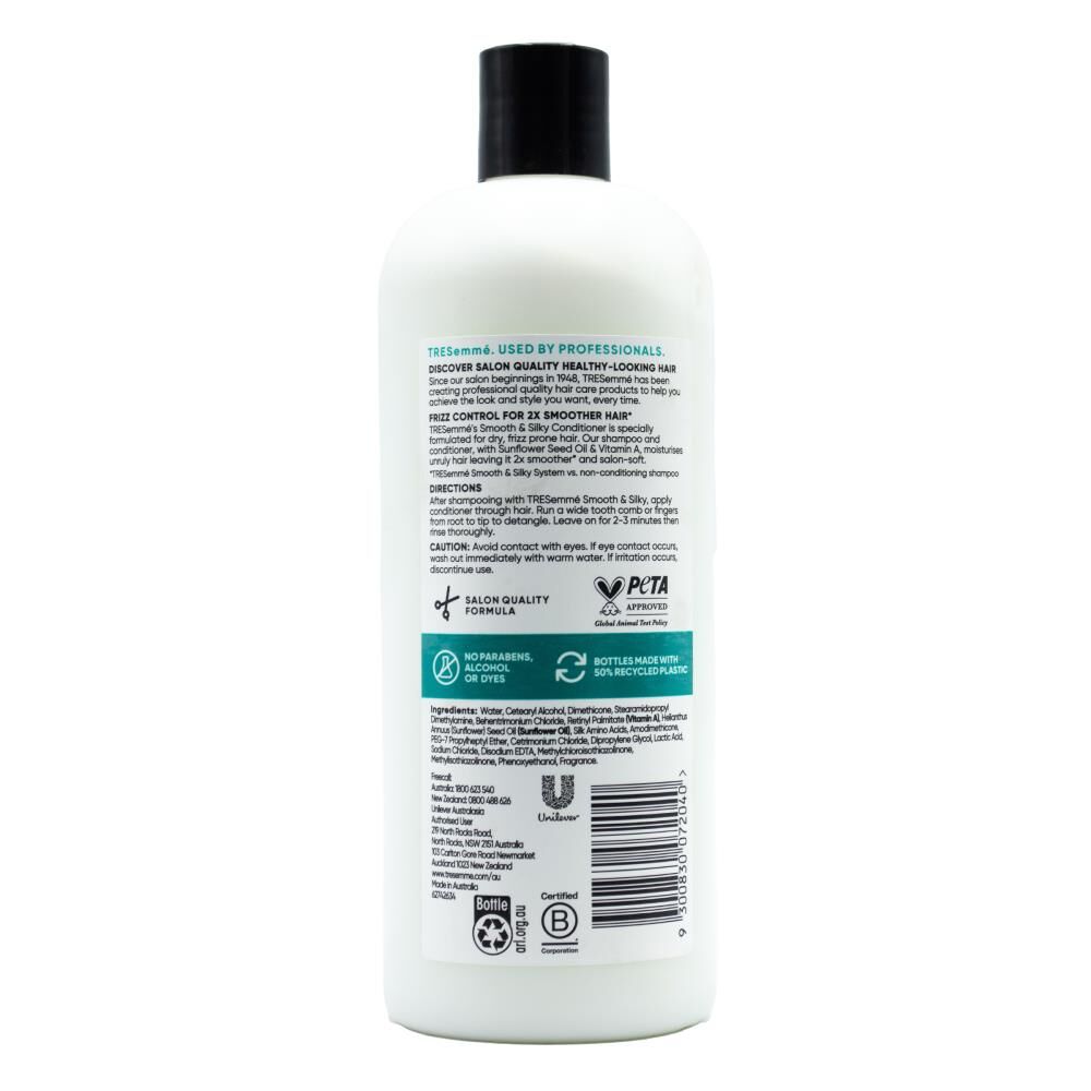 TRESemmé's Smooth & Silky Conditioner is specially formulated for dry, frizz prone hair. Our conditioner, with Sunflower Seed Oil & Vitamin A, moisturises unruly hair leaving it 2x smoother* and salon-soft.*TRESemmé Smooth & Silky System vs. non-conditioning shampoo. Free from parabens, alcohol and dyes this conditioner delivers intense moisturisation where your hair needs it most, to calm frizz. Since our salon beginnings in 1948, TRESemmé has been creating professional quality hair care products to help you achieve the look and style you want, every time. TRESemmé understands how great hair gives you the confidence to walk taller every day. Inspired by stylists and tested in salons, the products are designed to help you achieve salon gorgeous hair every day. They are salon quality formulas without the salon price tag. TRESemmé does not test on animals and is PETA approved worldwide. Bottles are made in Australia, with 50% Australian Recycled Plastic and are recyclable.
