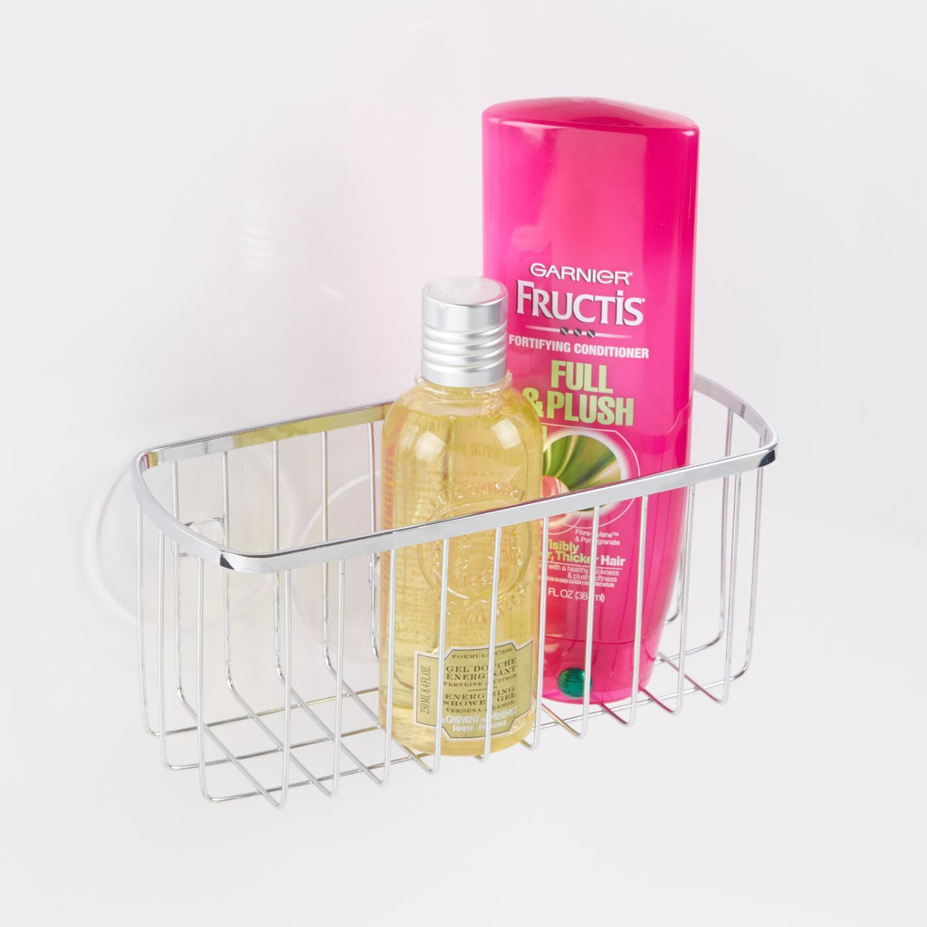 The InterDesign Suction Basket is ideal for holding all your shampoo, conditioners, shaving creams, tooth pastes, and more. Equipped with strong suction cups, this basket can be kept on the bathroom counter or adhered to the wall. This stylish, stainless steel basket merges with any decor or wall color in your bathroom.