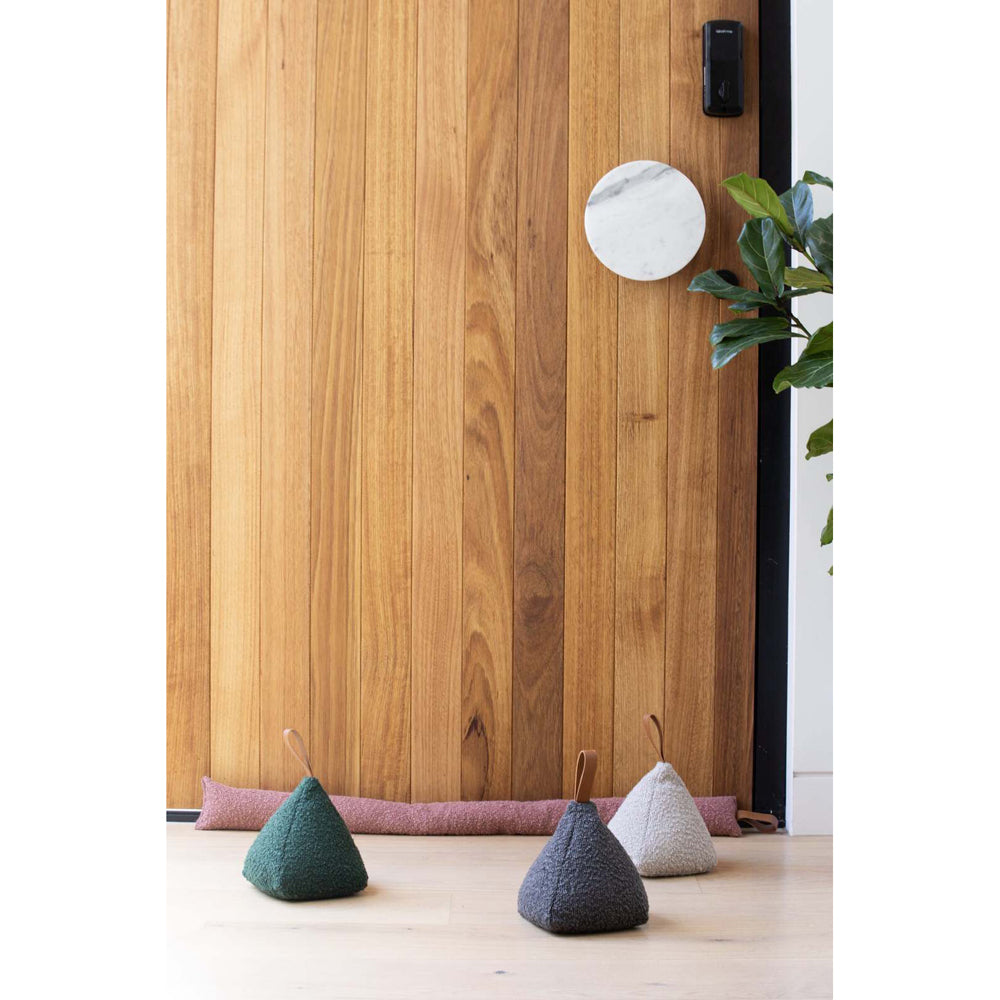 Stylish and modern design. Made from soft and durable boucle fabric. Available in 6 stunning colours. Weighted to stay in place and block out draughts. Features a loop for easy carrying