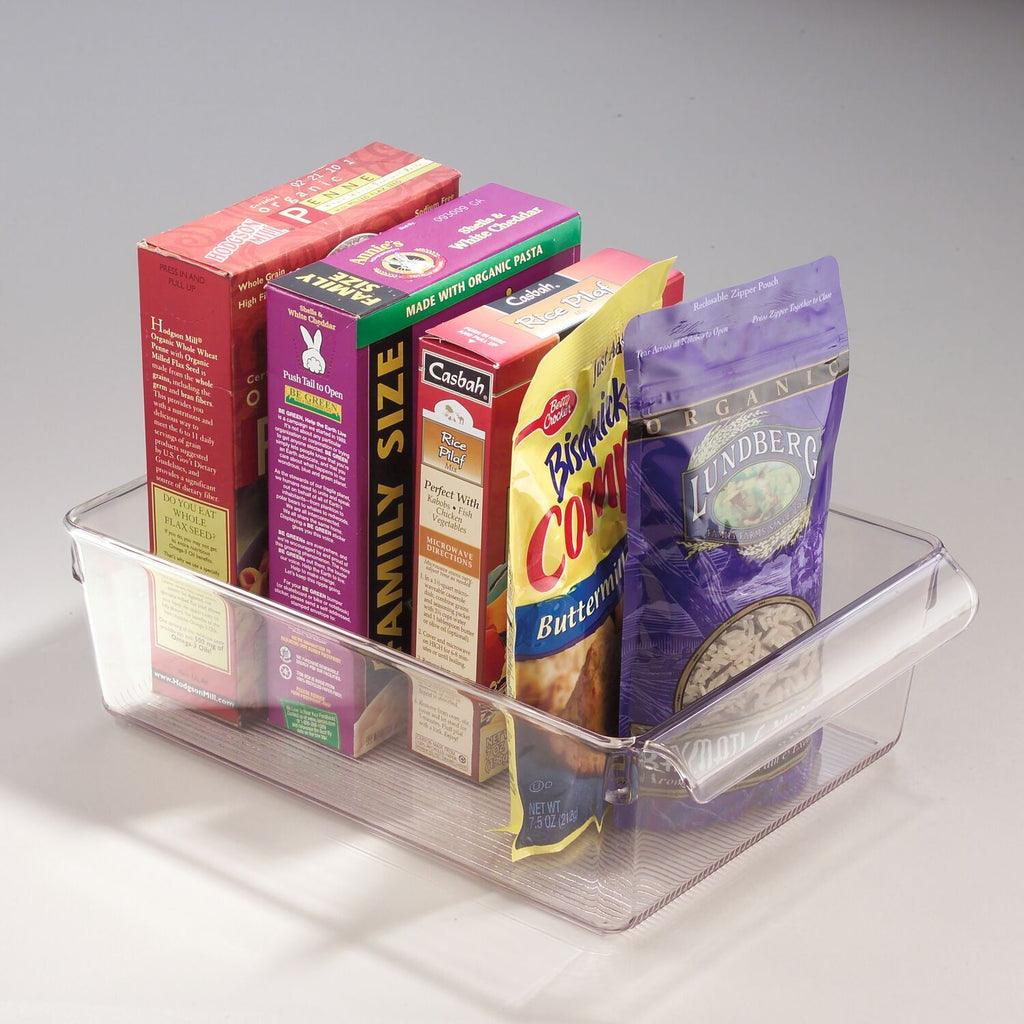 The iDesign Linus Fridge and Freezer Storage Bin is the perfect solution for organizing any kitchen. This versatile bin is made of durable, clear plastic to last for years of quality use. The open lid and integrated handle make seeing and stocking your items easy! The textured bottom prevents your items from sliding around. Store fruits, veggies, meats, cheeses, dry food, snacks, and more in the bin and place in the fridge or freezer! The iDesign Linus Fridge and Freezer Storage Bin , compact enough for any space.