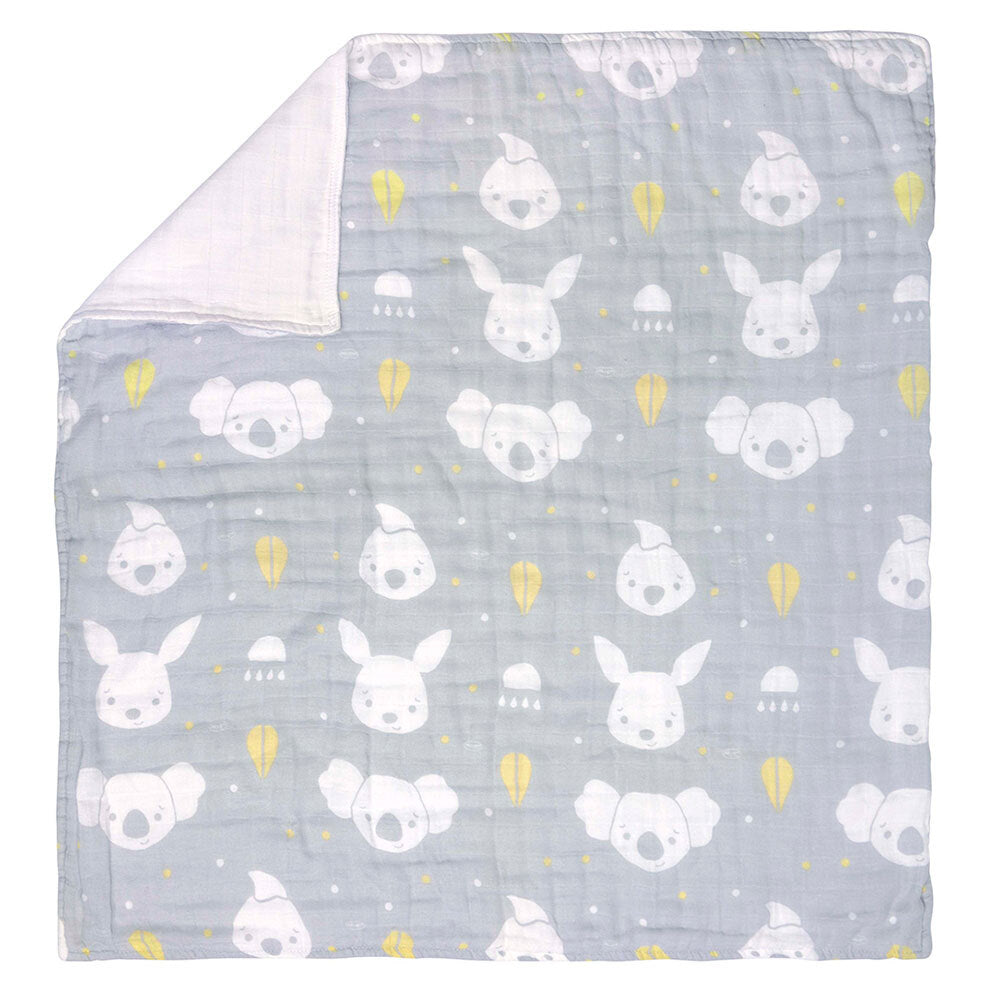 Give the gift of take anywhere comfort. Fauna Friends Pram Blanket is the perfect size, weight and design for on the go naps. Made from 100% cotton, it is lightweight, breathable and soft on baby's sensitive skin. A sweet print featuring fresh grey, white and yellow colours reflects Australian flora and fauna designs, perfect for every baby and every decor. Machine washable. Coordinates with the Playgro Home Fauna Friends textiles and toy range, for a beautiful nursery or keepsake gift.