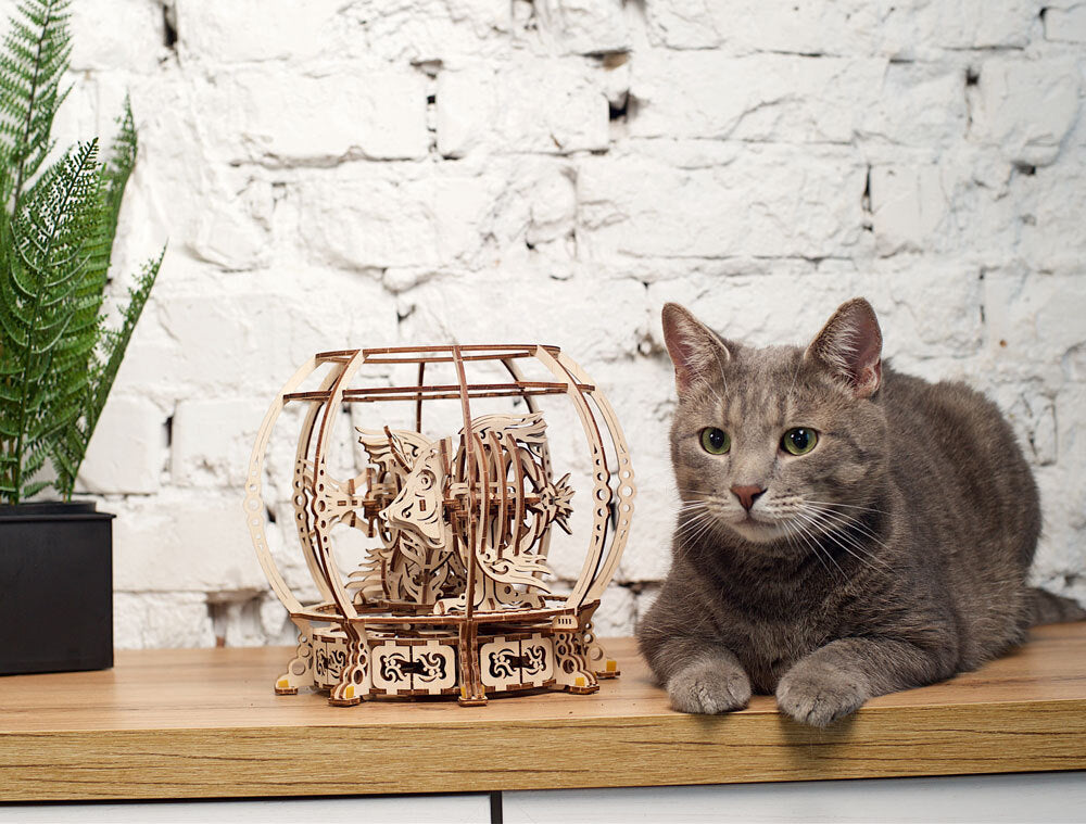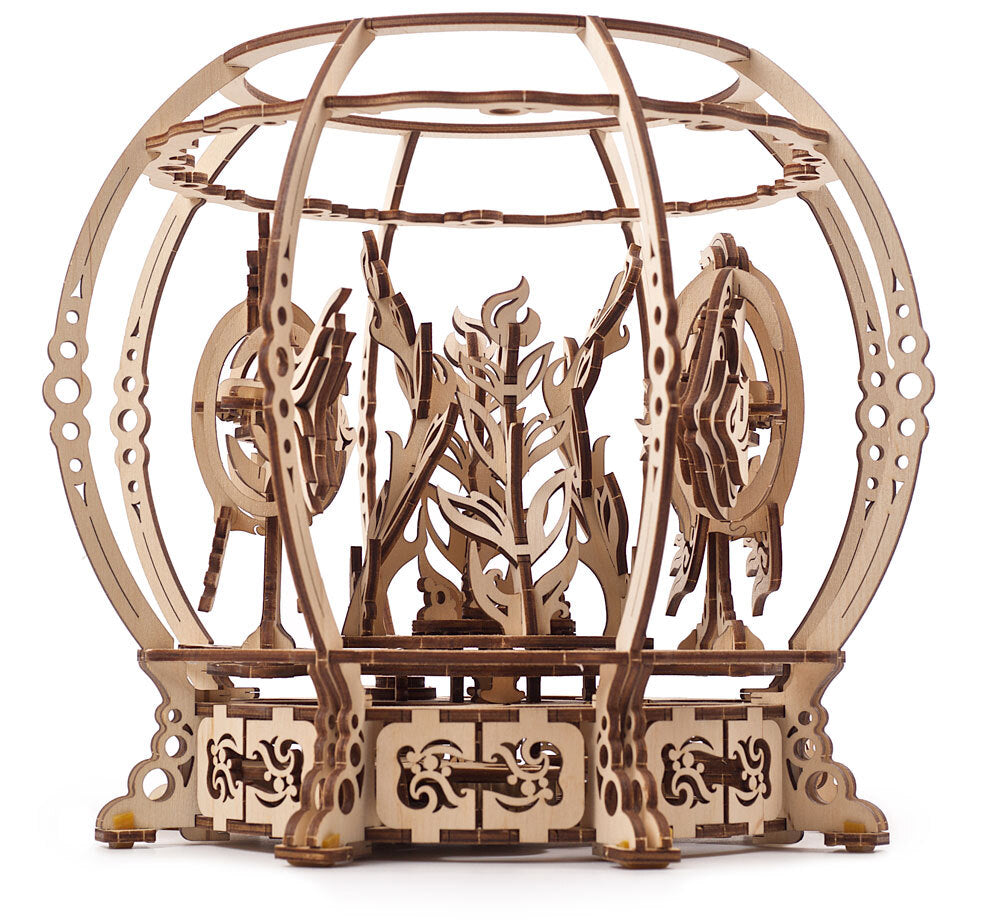 The Mechanical Aquarium from Ugears is an ingenious saltwater fishbowl, with two pet tropical fish chasing each other around a forest of macro-algae fronds, inside of which hides another small inhabitant of the marine environment—a seahorse!