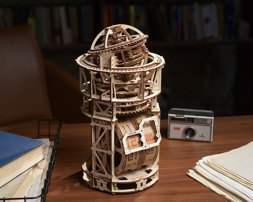 The Clockwork Universe theory favored by 17th C deists held that the Earth and the heavens, and all their motions, were like a giant clock, with God as the Clockmaker. Newton's three laws of motion and the principle of universal gravitation were thought to be sufficient to explain phenomena of any kind, using mechanical conceptions. At Ugears we love mechanical conceptions! And so with a nod to Isaac Newton, we present the Sky Watcher Tourbillon Table Clock, a fascinating combination of imaginative celestial observatory and functional table clock! This set will provide hours of fun for kids, teens and adults alike!