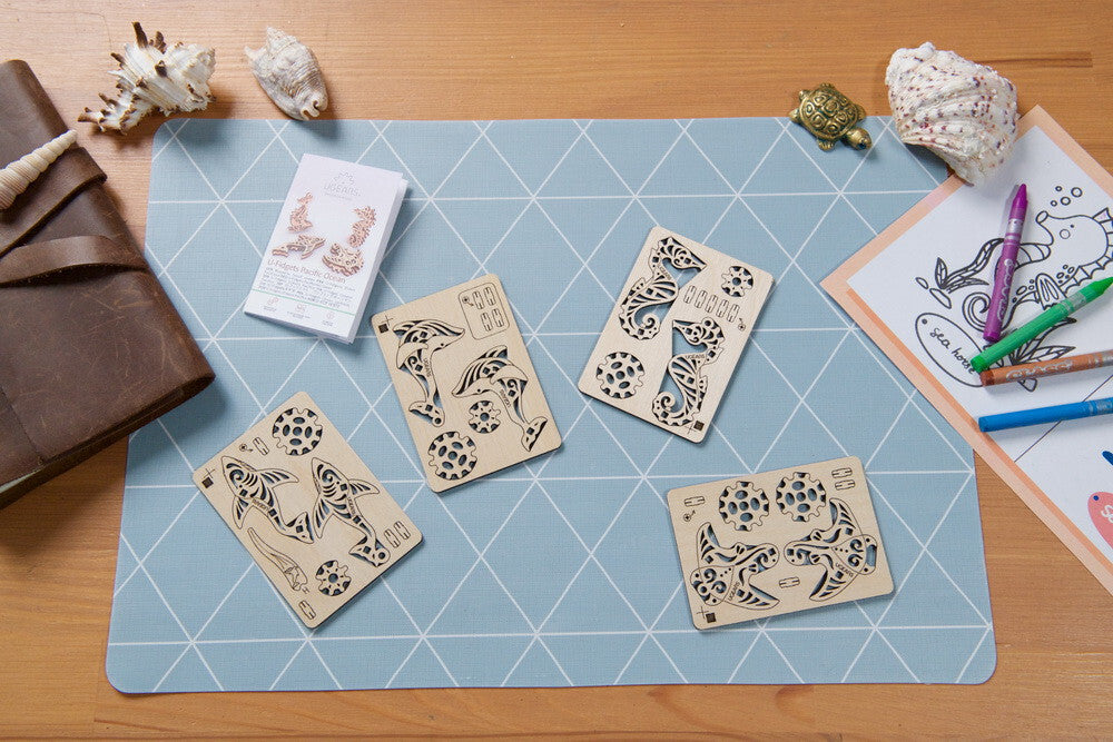 The Pacific Ocean series of U-Fidgets from Ugears features four iconic sea creatures: Whale, Stingray, Shark, Seahorse