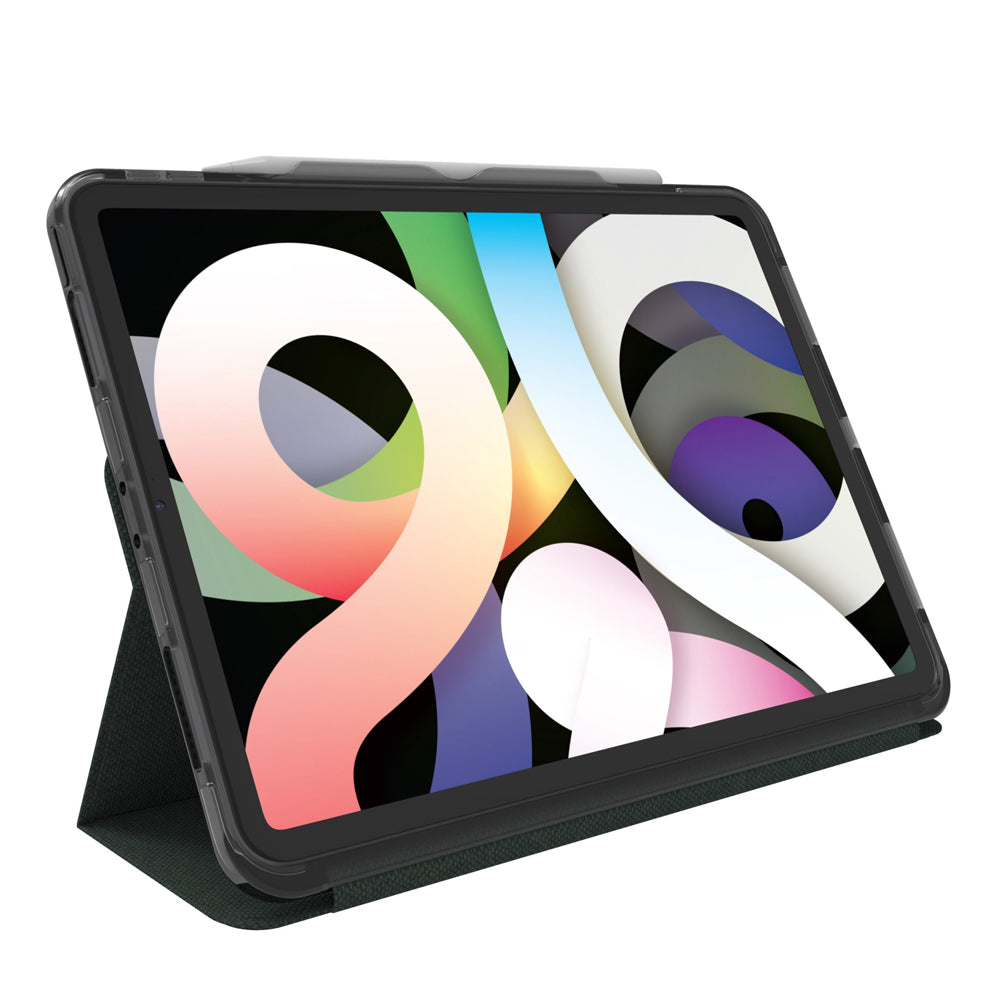 The cover folds back into a stand that holds your tablet at a convenient viewing angle.