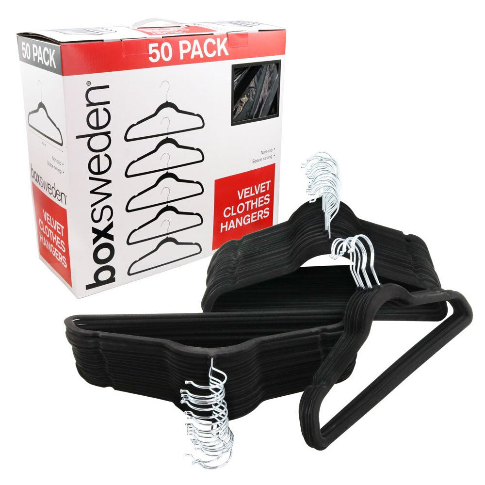 Keep your wardrobe tidy with our 50pc Boxsweden Velvet Clothes Hangers - Black.