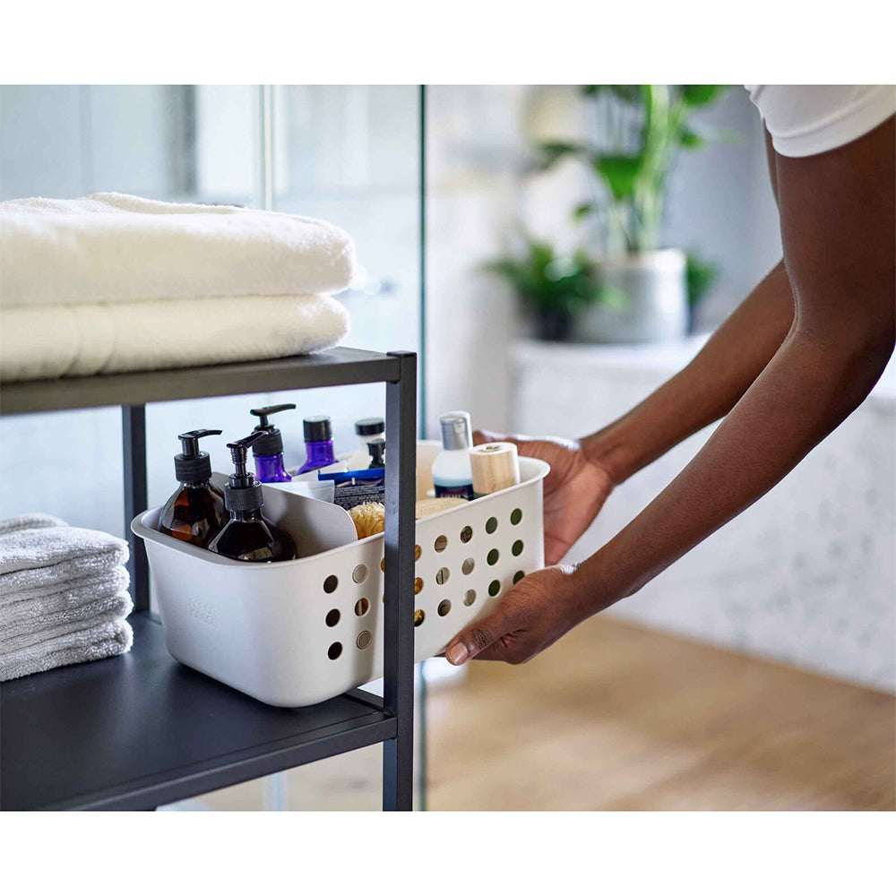 This large bathroom basket is perfect for storing a wide variety of grooming essentials, such as soap bottles, deodorants, hair accessories, fragrances and more. It features deep, ventilated sides for good air circulation and a moveable divider to allow you to tailor the space exactly as you need it. Ideal for organising items on shelves or inside drawers, it can be dismantled for easy cleaning.