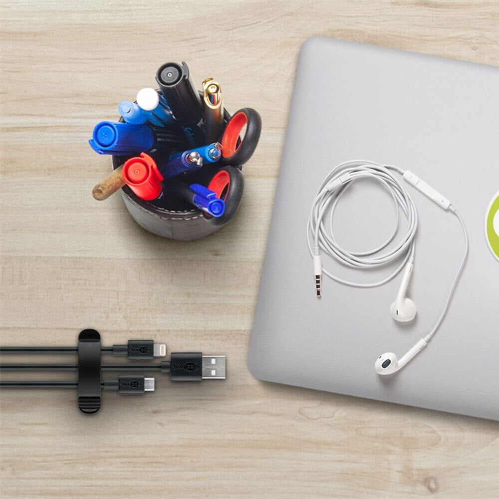 - Self-adhesive cable clips can be attached directly to a desk, monitor, TV bench or shelf.