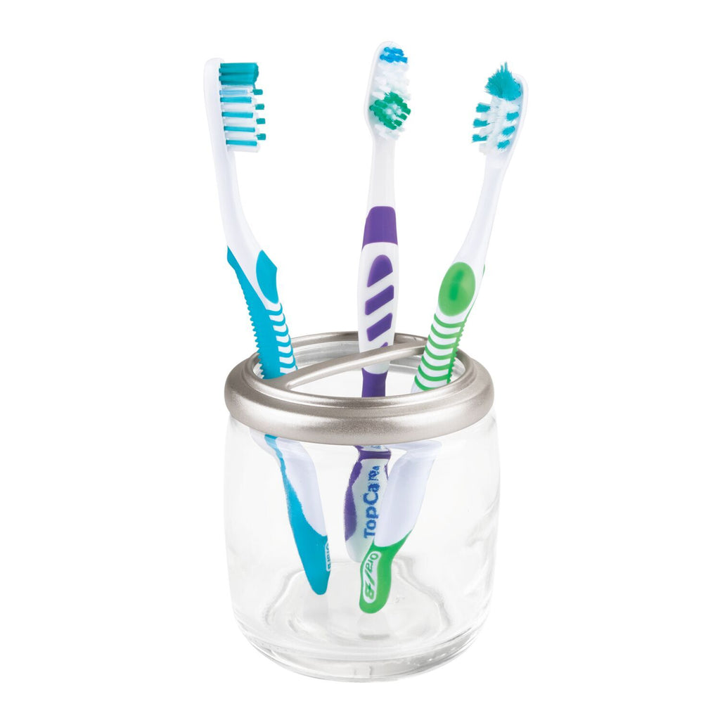 InterDesign's Hamilton bath accessory collection is the perfect addition to your bathroom vanity. It has a classic style that will give your bathroom an instant update and is made of glass with steel accents.