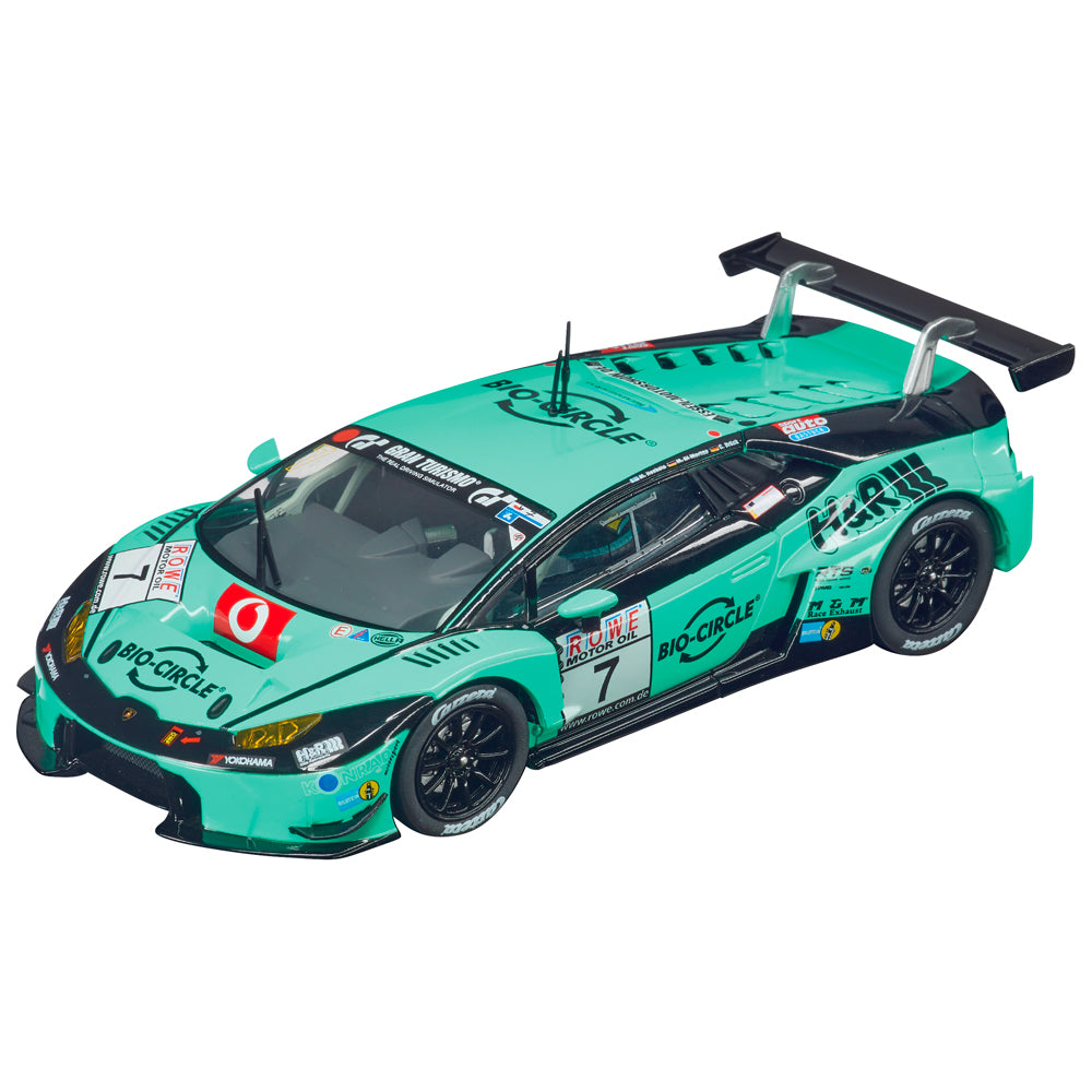 Speed equals success! The Carrera Evolution 'Super Cars' set features a battle of two speed beasts! The Chevrolet Corvette C7.R 'No.3' with Jan Magnussen, Antonio Garcia und Jordan Taylor against the Lamborghini Huracán GT3 'onrad Motorsport, No.7' driven by Axcil Jefferies and Michele Di Martino guarantees impressive ontrac power. The turquoise no.7 Lamborghini and metallic grey and yellowpainted no.3 Chevrolet now no compromises! Lamborghini vs. Chevrolet! Fitted with front and rear lights, the cars can be operated in beginners' or advanced mode. All drivers aged 8 years and up can show off control handset sills that will earn them top spot on the podium around the challenging 5.3metre Evolution car racing circuit! NEW Even more racing action! The new EVOLUTION Sets now also contain vehicles with a light function, an electronic hand controller for more precise speed control and an advanced / beginner mode 100/70%.