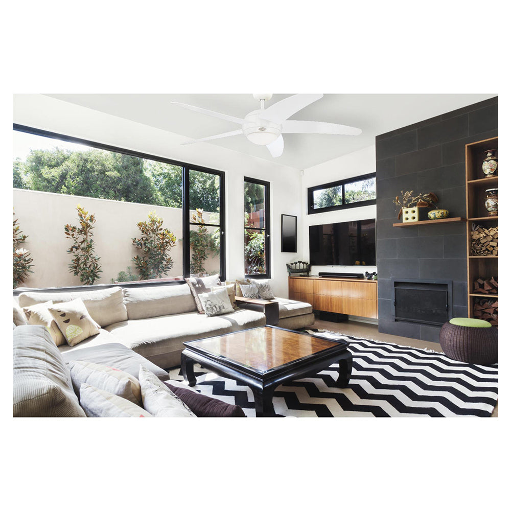 Indoor 132 cm contemporary white ceiling fan is ideal for large rooms up to 20 square meters (225 square feet) with standard or sloped ceilings