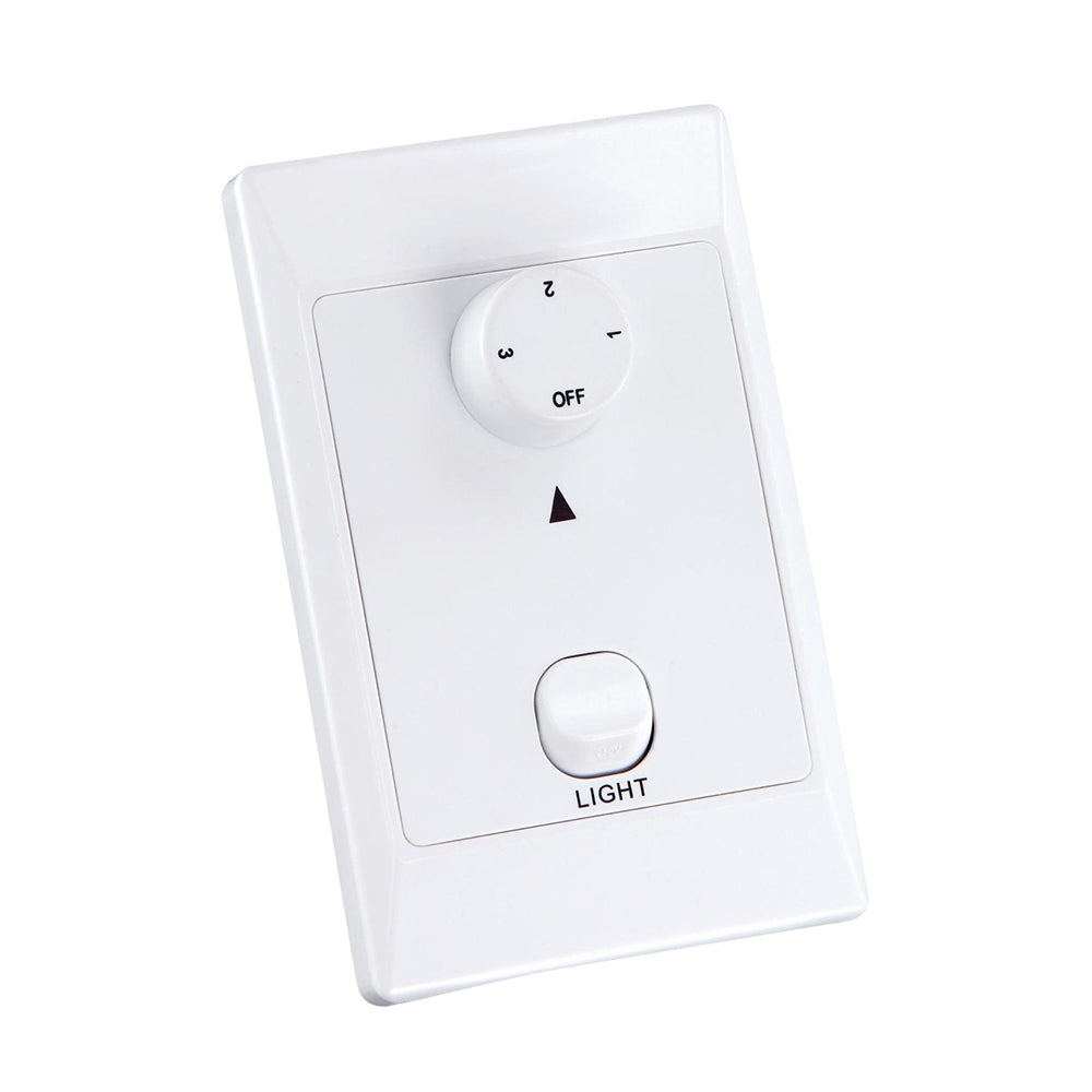 Wall control included, three speed control, on/off function for fan and on/off for light, remote control adaptable