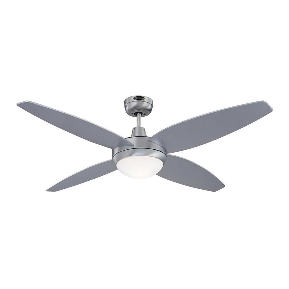 Four reversible blades in silver/graphite finish, integrated 17-watt LED light kit with opal frosted glass provides additional energy and cost-saving benefits