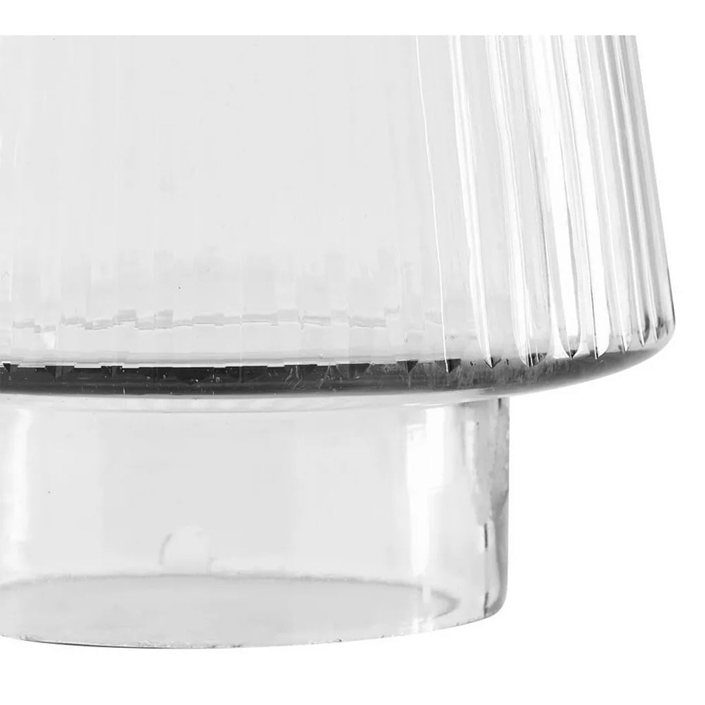 Made from glass with a ribbed texture