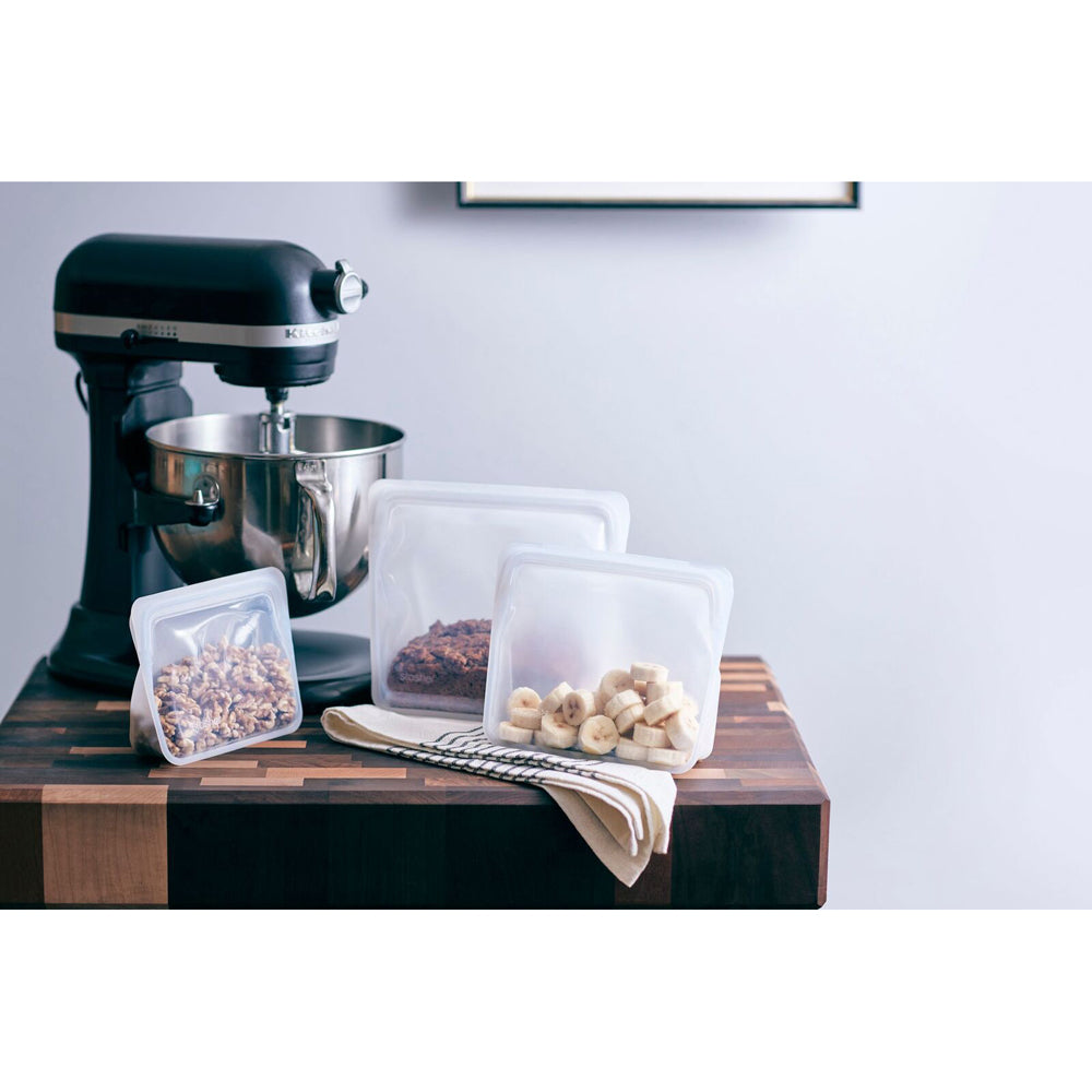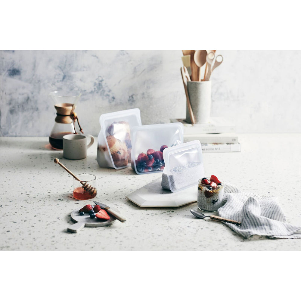 Possibly the most versatile of the Stasher lineup, the Stand-Up Stasher is endlessly reusable and useful in the kitchen and beyond. Perfect for bulk shopping, storing leftovers and soups, and marinating meat and veggies.