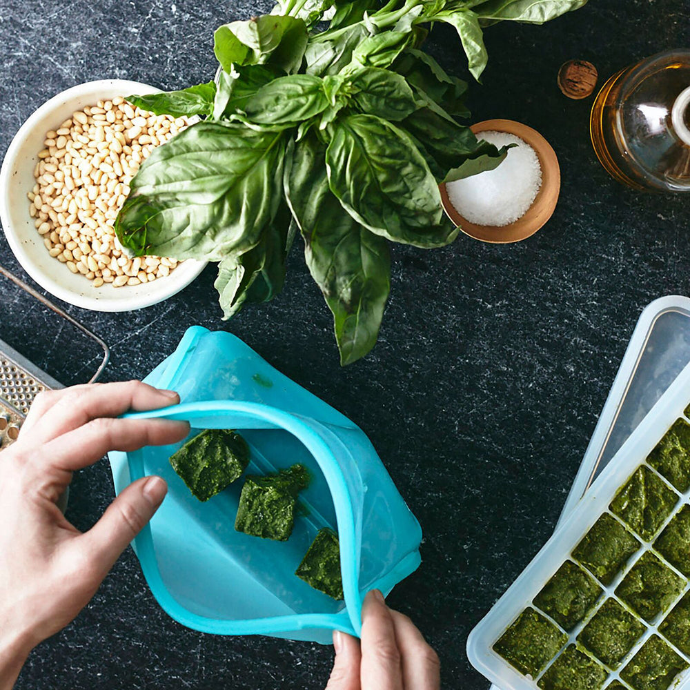 Possibly the most versatile of the Stasher lineup, the Stand-Up Stasher is endlessly reusable and useful in the kitchen and beyond. Perfect for bulk shopping, storing leftovers and soups, and marinating meat and veggies, the Stand-Up Stasher folds flat when not in use for ultimate portability and space saving. This non-toxic bag is made of pure platinum food-grade silicone and is sous vide, microwave, dishwasher, and freezer safe. It’s patented Pinch-Loc™ seal also makes it an ideal makeup or personal care product container, especially on the go. Part of a 3 size Stand Up series for all your pantry and toiletry needs.