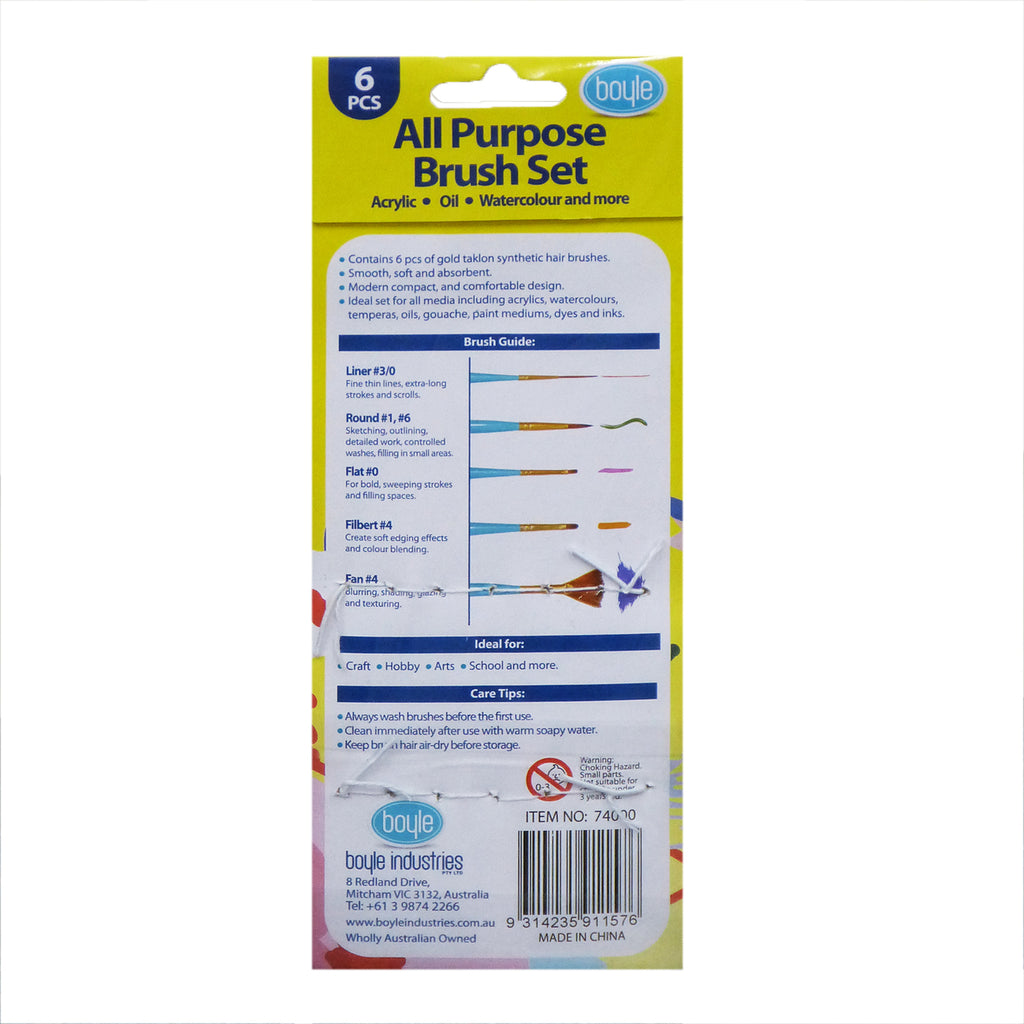 6pc Boyle All Purpose Soft Art/Craft Paint Brush Set