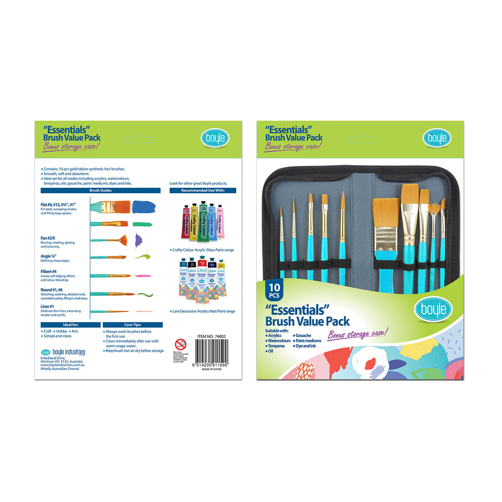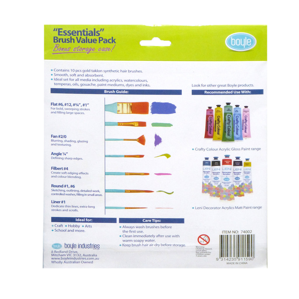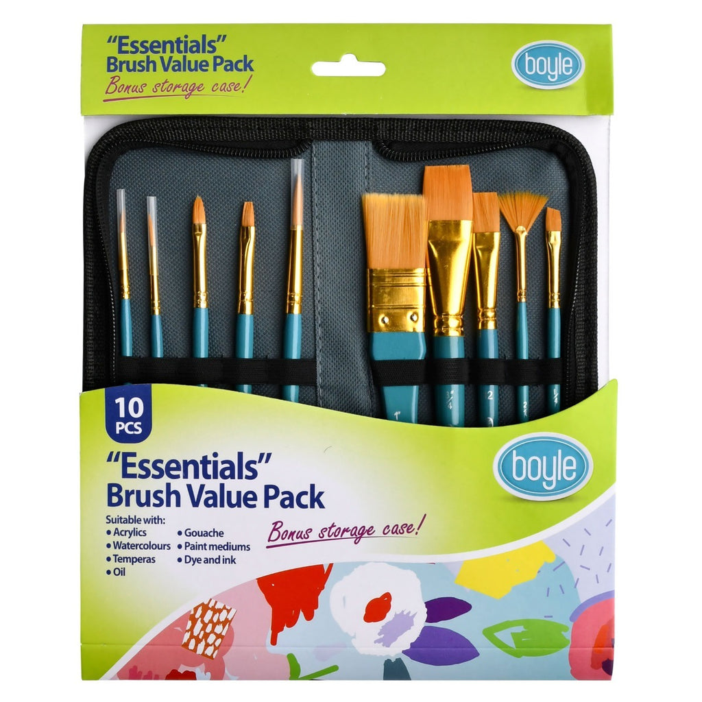 10pc Boyle Essentials Craft Paint Brush Set w/ Storage Case